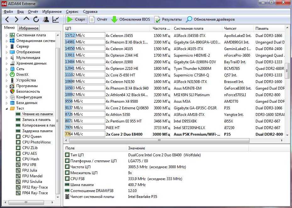 Утилита AIDA64 предоставляет пользователю огромное количество информации о компьютере и используемых внутри него устройств, а также позволяет провести тестирование таких важных компонентов как центральный процессор, видеокарта и оперативная память. На простом примере рассмотрим проведение теста чтения из оперативной памяти. Для этого проделайте следующие действия: