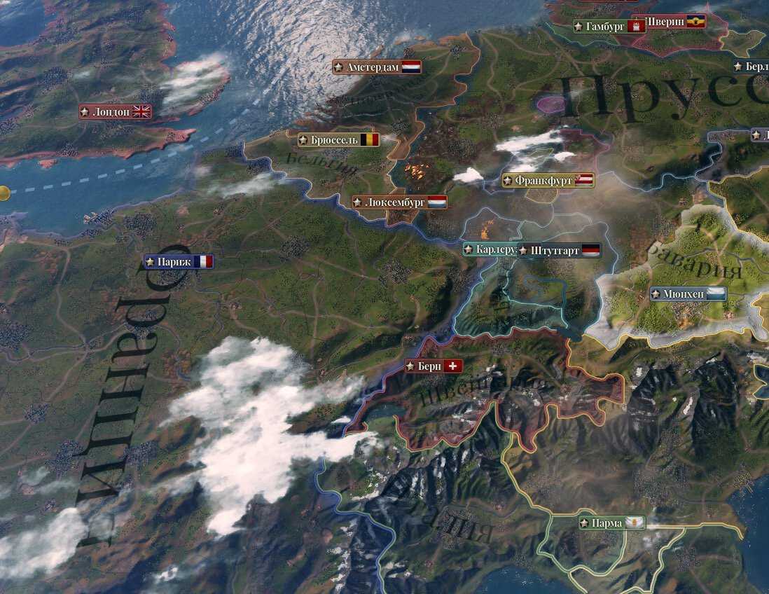 Из того что нам показали, карта в VIctoria 3 выглядит чудесно детализированной. Для удобства можно зуммировать, использовать упрощенный глобальный вид или переключаться на географический. Над территориями двигаются облака, видно дороги, города и порты.