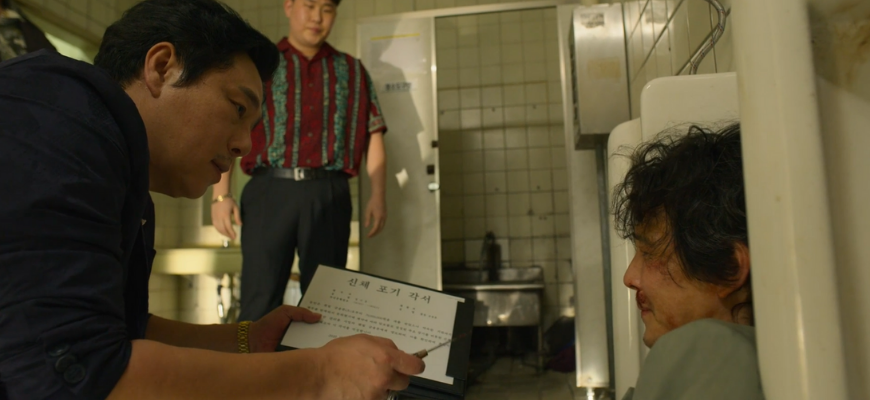 Вербовщик уговаривает Ки Хуна сыграть в игру, которая, по сути, является микрокосмом всего сериала: за каждый проигранный раунд продавец заплатит Ки Хуну 100 долларов. За каждый выигранный раунд он может ударить Ки Хуна по лицу, что он и делает, причем сильно, пока лицо героя не становится красным. Когда Ки Хун наконец побеждает, полученная им сумма меркнет по сравнению с теми болью и унижением, которые он испытывает; это предвещает неизбежный финал сериала. Никакие деньги не смогут компенсировать пытки, которые придется пережить Ки Хуну и остальным.