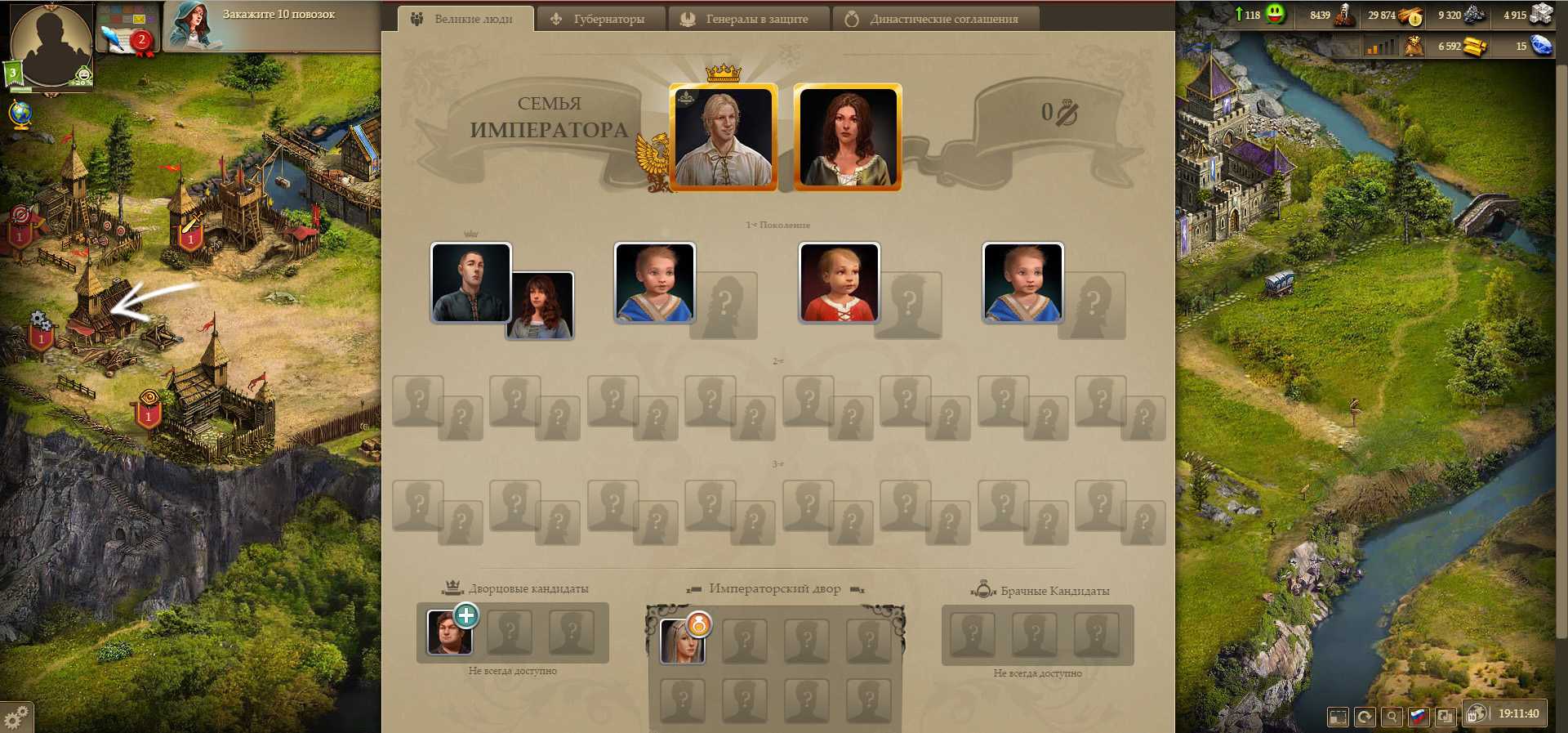 Чуть выше я уже намекнул, что одна особенность в игре Империя Онлайн все-таки имеется, которая действительно отличает ее от прочих. Речь, как вы уже, наверное, поняли из загловока, про великих людей, которые, технически, представляют собой набор героев со своими особенностями, навыками и даже характером. Два основных персонажа – это император и императрица. У них есть свои способности, которые могут меняться. Со временем у вас подрастают дети, которые превращаются в полноценных членов вашего двора и начинают приносить пользу. Например, у меня был сын, который давал мне возможность грабить на 50% больше ресурсов и добывать на 30% больше дерева. Полезный отпрыск, что уж там. Помимо кровной родни, вы можете также набирать себе придворных – максимальное количество великих людей этой касты восемь. Здесь, как раз, самое интересное, потому что выбирать вы можете сами из кандидатов, которые случайным образом генерируются для вас игрой. В общем и целом в игре Imperia Online великие люди – это действительно интересная и, что куда важней, уникальная фишка, которая добавляет в копилку игры сразу несколько очков и выделяет ее на фоне других проектов.