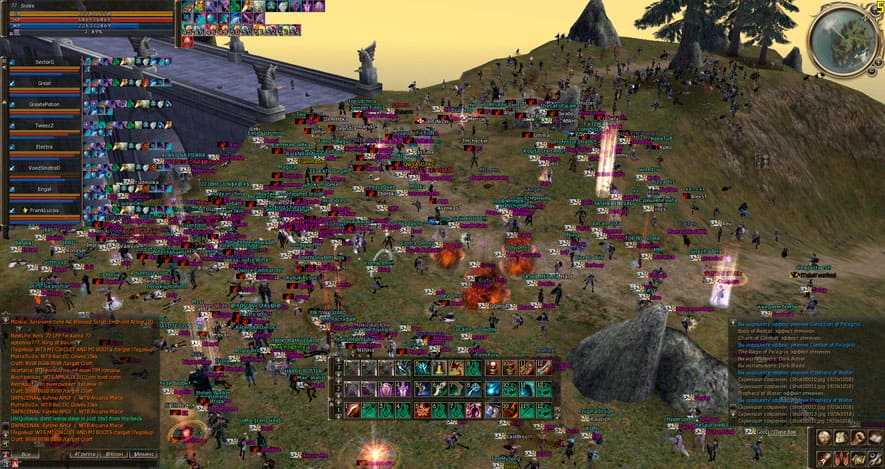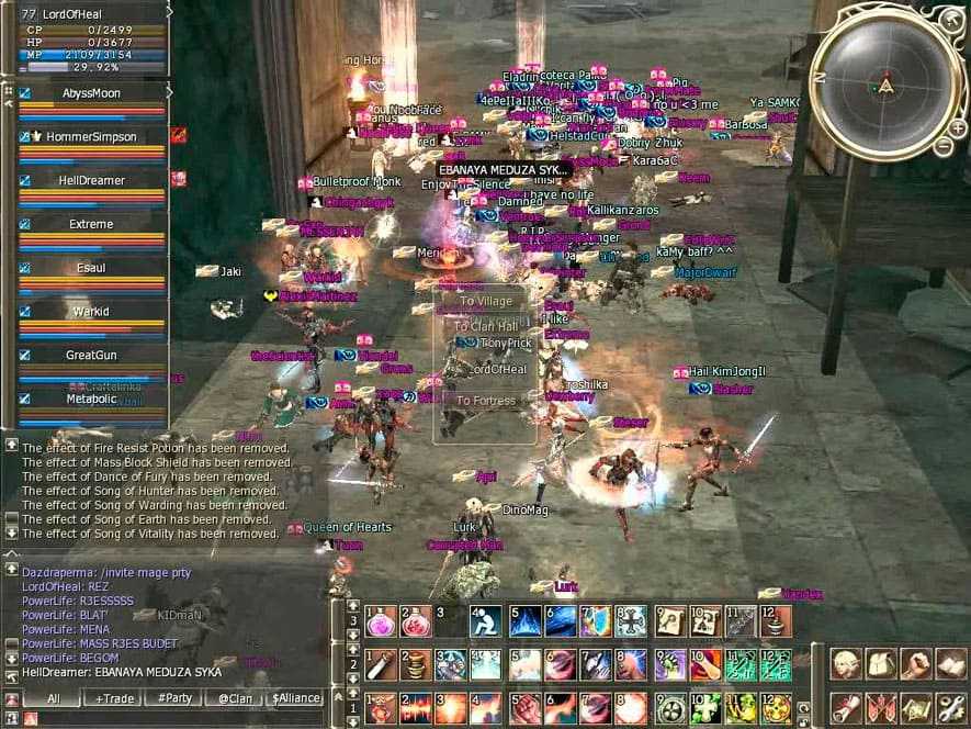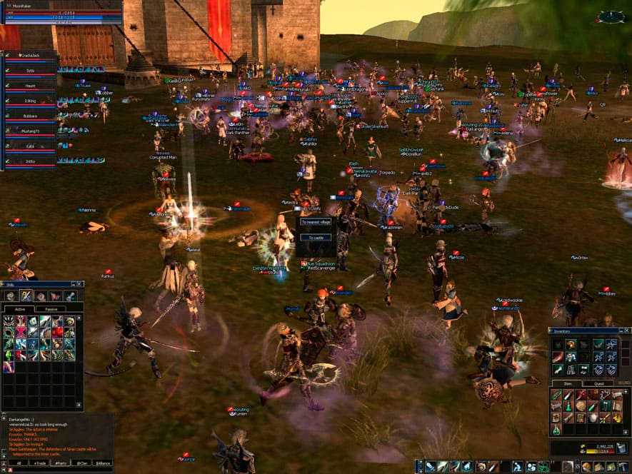 - Масштабы сражений завораживают дух, ведь на поле брани легко может уместиться тысяча геймеров. Большой фурор в игре Линейдж 2 производят сражения между альянсами за замки, за этим часто следит весь сервер. Так как крепких объединений чуть больше чем крепостей, за которые ложатся на полях сражений тысячи игроков. Стороной нельзя обходить и рейдовых боссов, потому что с них выпадают самые ценные предметы и вещи, которые стоят очень дорого. И порой можно увидеть, как кланы друг друга гасят перед боссом или параллельно дерутся на две и даже три стороны одновременно. Так сказать в некой мере на этой почве создаётся особое шоу в игре Lineage 2.