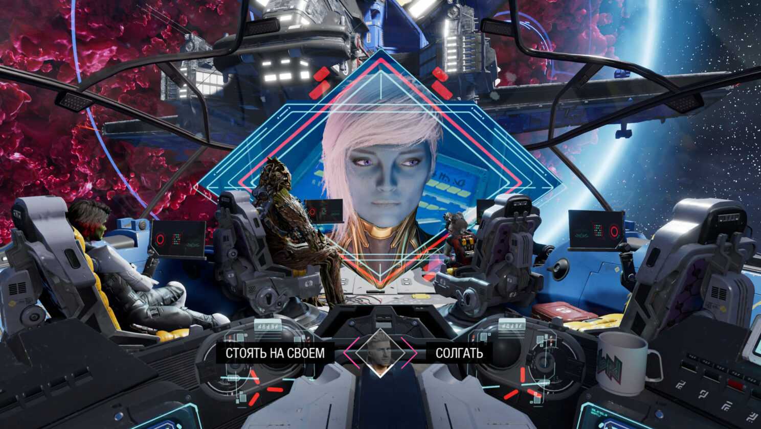У Питера Квилла есть своя «Нормандия», на которой вместе с ним живут остальные стражи: Ракета, Грут, Гамора и Дракс. Между миссиями по кораблю можно походить, а с экипажем — поговорить по душам или как следует посраться. И этим хочется заниматься, потому что отношения между героями всю игру будут напряжёнными — то по одной, то по другой причине. Всегда будет о чём языком почесать, а уж диалоги тут написаны не хуже, а то и лучше, чем в некоторых играх BioWare.