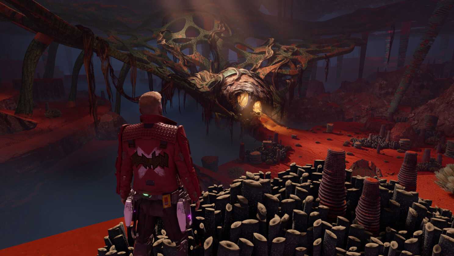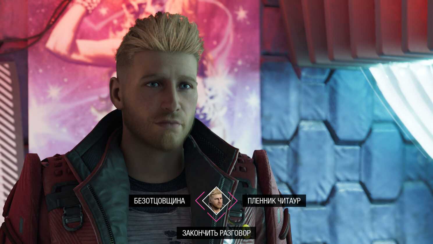 Сразу стоит закрепить, что всё это сделано далеко не так тонко и красиво, как в последних играх Naughty Dog, но всё-таки работает. Когда же дело доходит до кат-сцен, то уж тут «Стражи Галактики» выступают не хуже. Изредка глаз режет рваный монтаж, но ракурсы и свет — голливудского уровня. И хотя анимация в игре не идеальна, в целом картинка — одна из самых впечатляющих в текущем поколении. Редкий случай, когда на PS5 я играл именно в режиме с высоким качеством, жертвуя частотой кадров.