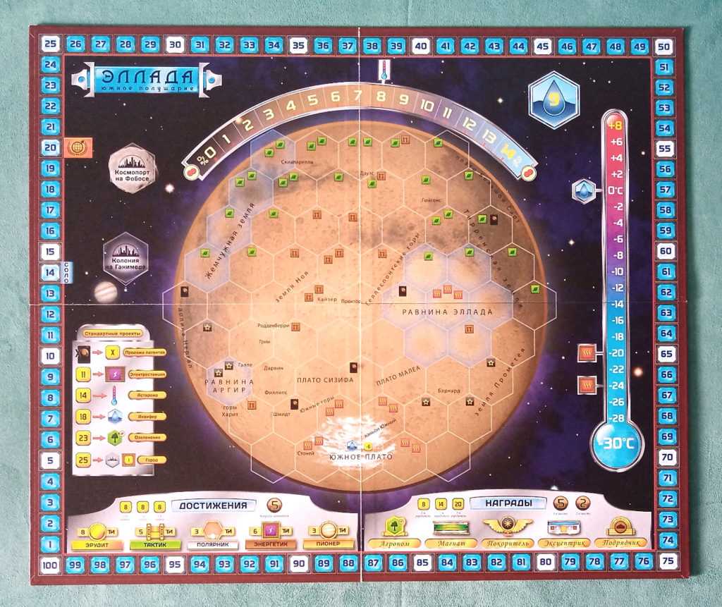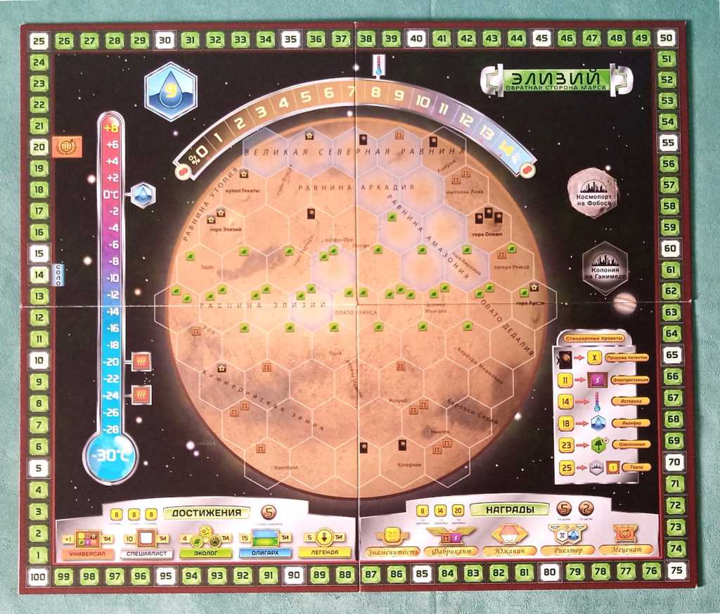 Наиграв приличное количество партий в базу, начинаешь понимать, какая из корпораций возьмет то или иное достижение. Например, корпорация «Фарсидская республика» заберет достижение «Мэр», а корпорация «Эколайн» заберет достижение «Садовод». И, к сожалению, с этим ничего не поделать. А 5 победных очков — это ощутимая прибавка к твоим победным очкам. Кроме этого, застройка на Марсе от партии к партии приходит к некому постоянному алгоритму. Как правило, она ведется ближе к центру. И многие игроки пользуются этим знанием, выстраивая города так, что бы вокруг них строили леса другие игроки. И вот в такой ситуации дополнение «Эллада и Элизий» помогает разнообразить игру.
