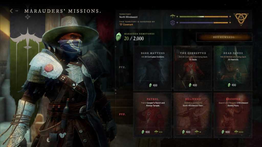 Выполняя PvE-миссий вы также увеличиваете влияние вашей фракции на территории, но значительно меньше, чем за PvP-миссий. Сбор снаряжение, уничтожение монстров, доставление сообщений — приносит вам валюту и репутацию вашей фракции, необходимой для покупки снаряжения и прокачки персонажа.