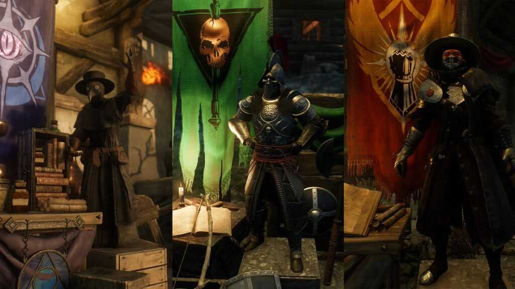 - Синдикат – фиолетовый цвет. Их стремления направлены на поиски тайных знаний Этернума и изучение силы Азота во благо внешнего мира. Их стиль снаряжения отсылает к чумным докторам.