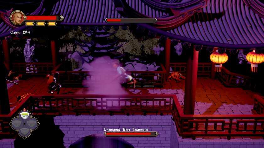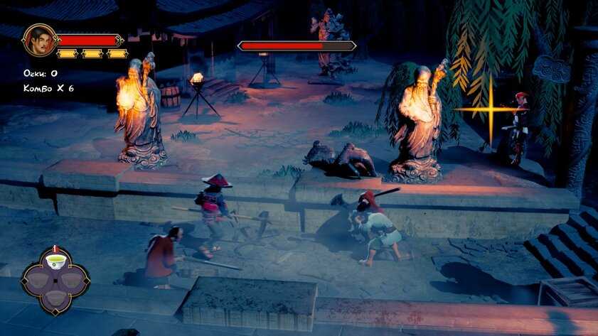 Главное в любом beat ‘em up-проекте не сюжет, а боевая система, и с этим разработчики из Sobaka Studio прекрасно справились. Центральный герой в демо способен наносить два удара посохом, легкий и тяжелый, а также бить противников ногами. При этом Вэй Чен крутит потрясающие воображение пируэты и действует вопреки законам физики, что только добавляет зрелищности схваткам. Судя по описанию игры в Steam, в полной версии пользователи смогут также использовать магию.