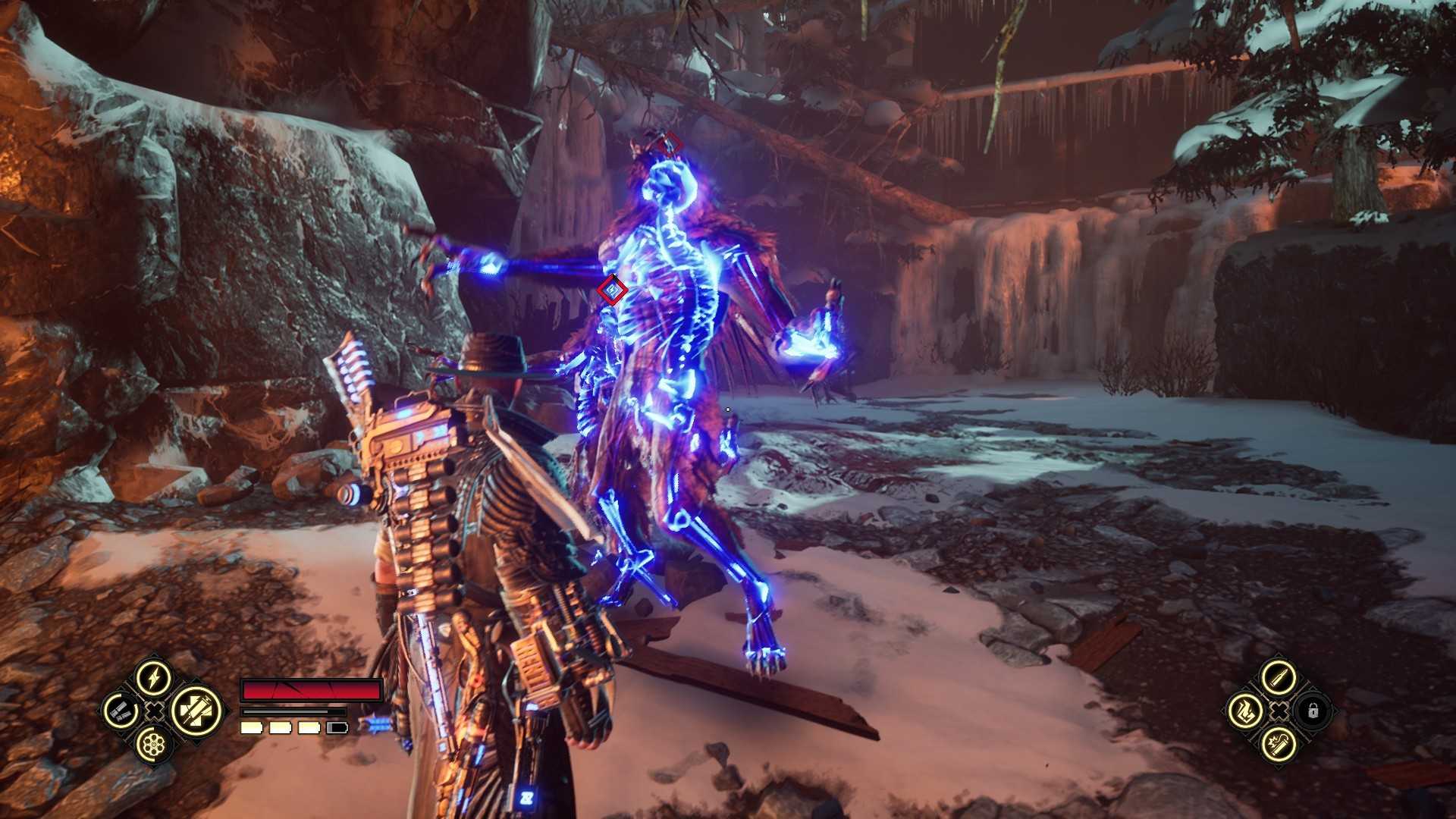 Перчатка Джесси позволяет ему парировать удары, притягивать к себе более слабых врагов и совершать рывки к врагам. Когда это произойдет, слабые противники будут поражены электрическим током, что позволит вам провести быструю серию улучшаемых ударов. Говоря об ударах, у Джесси есть строка атаки по умолчанию, плюс он может апперкотировать слабых врагов и жонглировать ими с помощью большего количества ударов или револьвера. Вы также можете набросить их на других, пока они находятся в воздухе. По мере развития Злого Запада ваш репертуар навыков увеличивается — все они находятся на перезарядке. На какое-то время кажется, что у вас больше арсенала, чем вам может понадобиться.
