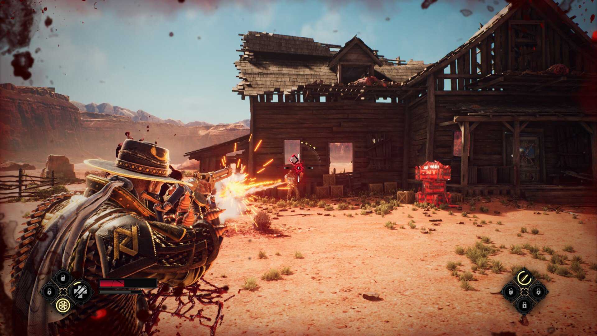 Инструментов для кровавых расправ много. Поначалу ковбой полагается на кулаки, но уже через пару уровней носит револьвер, винтовку, дробовик, динамит и даже электрические перчатки с крутым хлыстом. Арсенал только кажется скромным – на деле его достаточно, чтобы убивать с креативом уровня Bulletstorm.