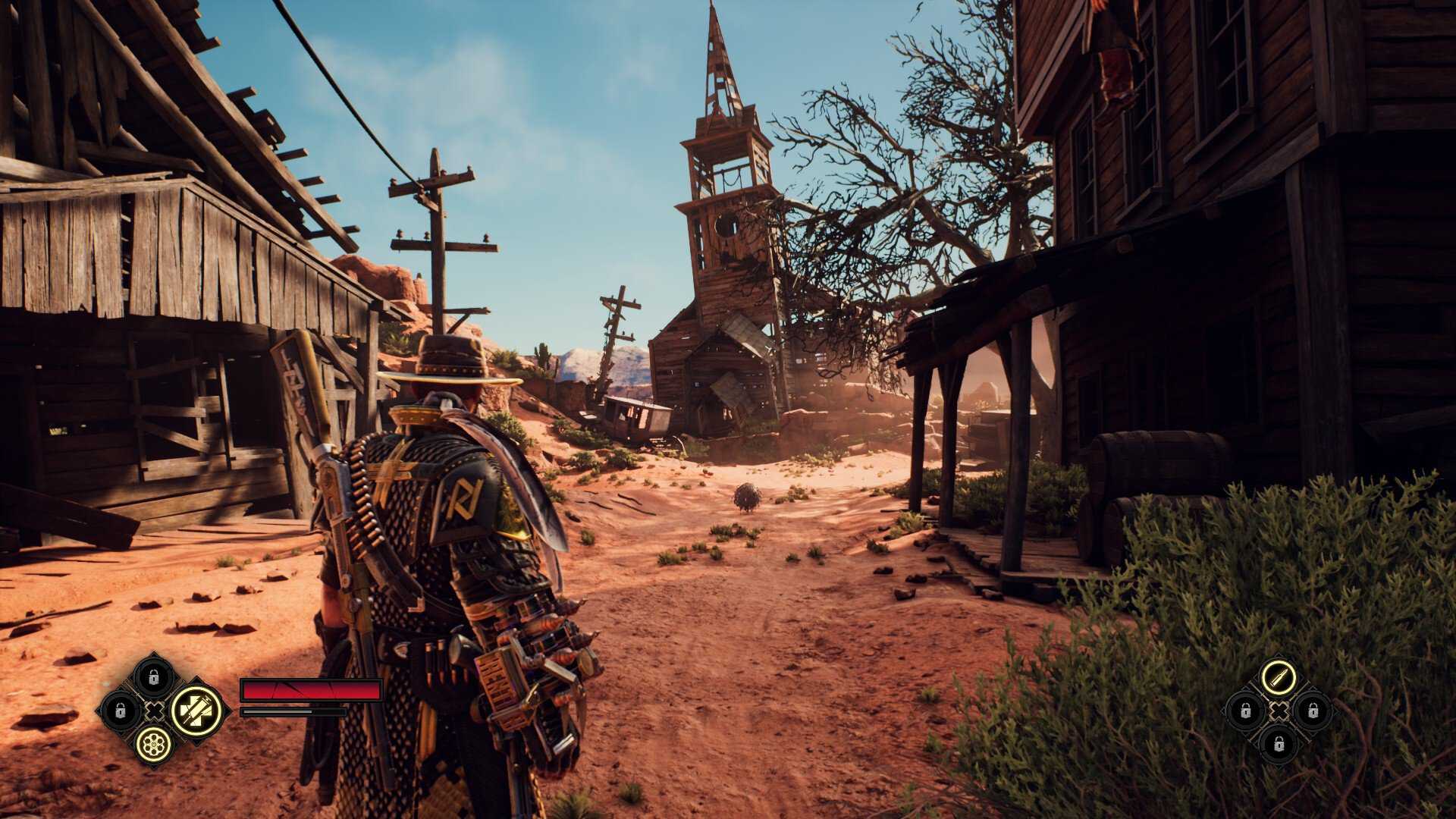 Еще и дизайн симпатичный. Взгляните на этот вымерший городок. Он одновременно передает атмосферу Дикого Запада и напрягает. В хлипких домах точно сидит нечто жуткое и следит за героем.