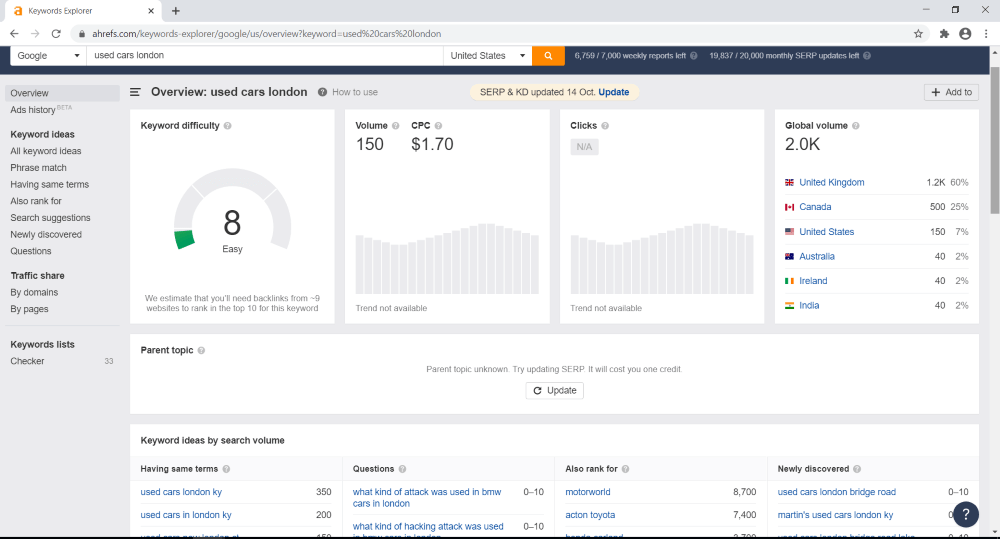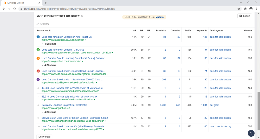Поиск конкурентов по ключевым словам в Ahrefs