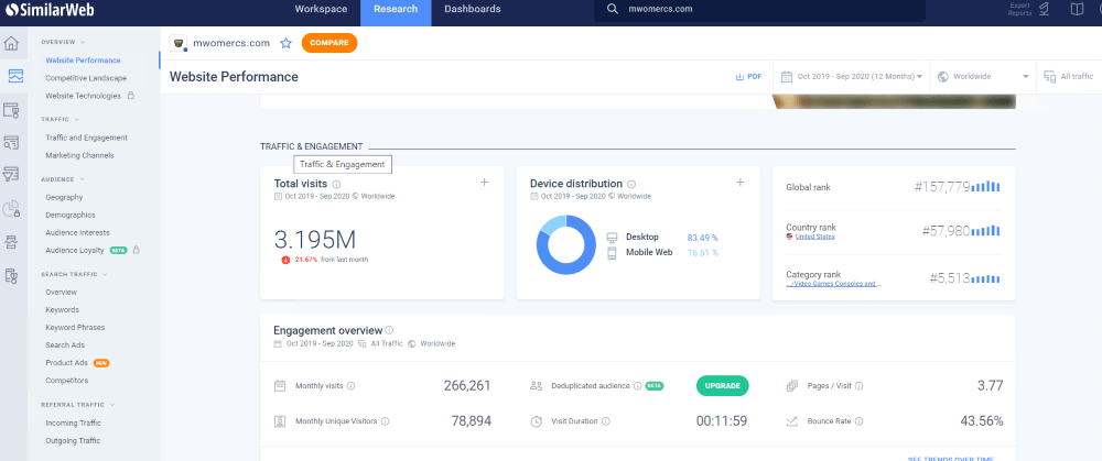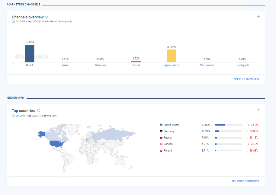 Аналитика Similarweb по платформе-донору