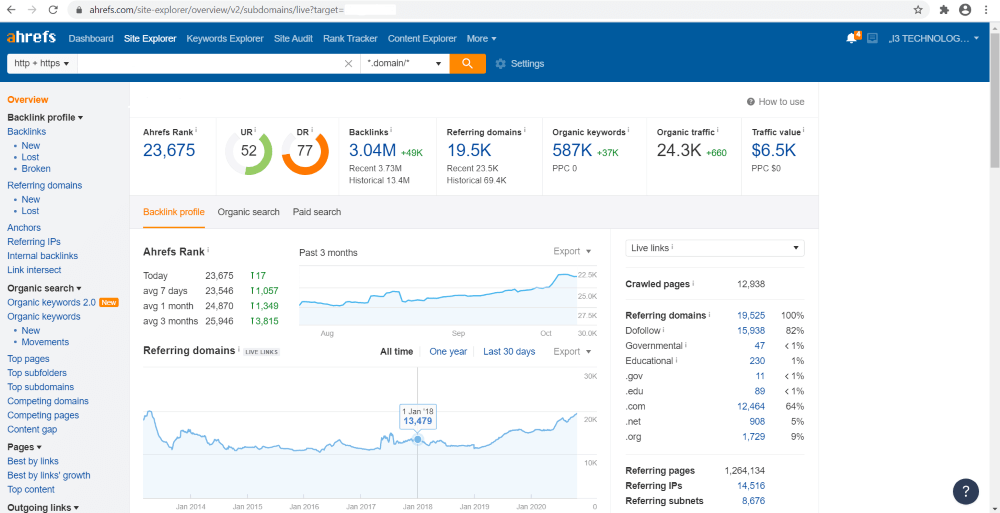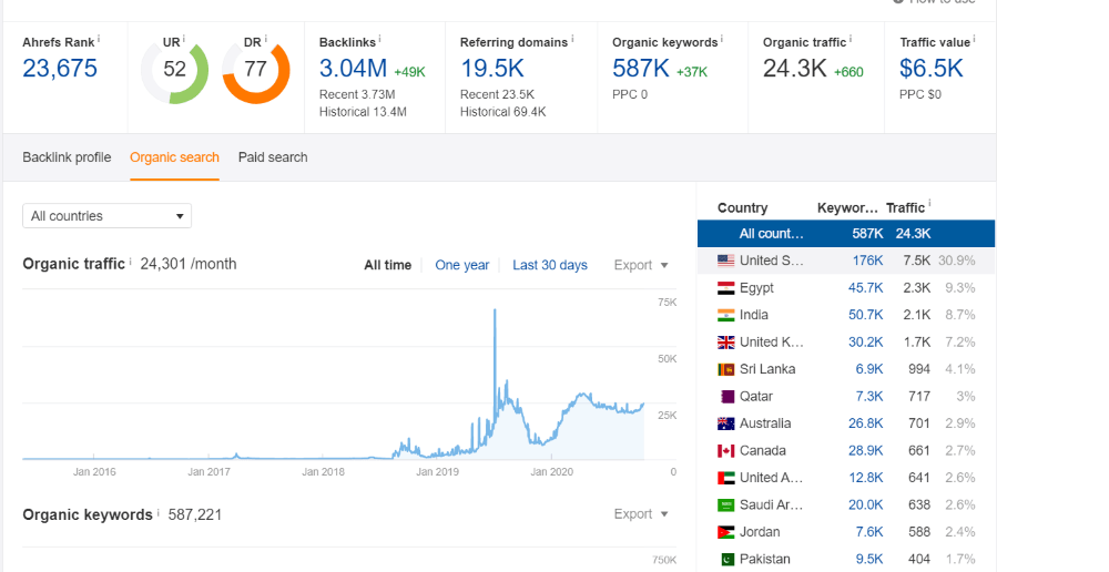 Аналитика Ahrefs по платформе-донору