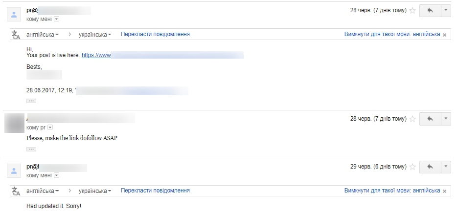 Но, хоть работа через посредника звучит и воодушевляюще, на деле – это один большой подводный камень. Во-первых, по классике работы с подрядчиками, вся коммуникация с донором будет идти только через посредника, а они часто недобросовестно договариваются с платформами. Например, могут проигнорировать запрос о постоянной ссылке и не оговаривают это с вебмастером перед публикацией.