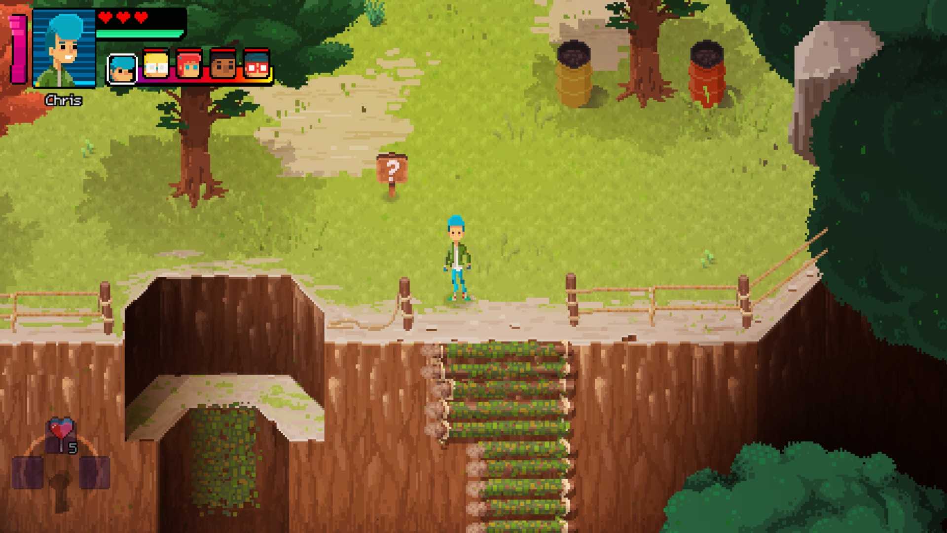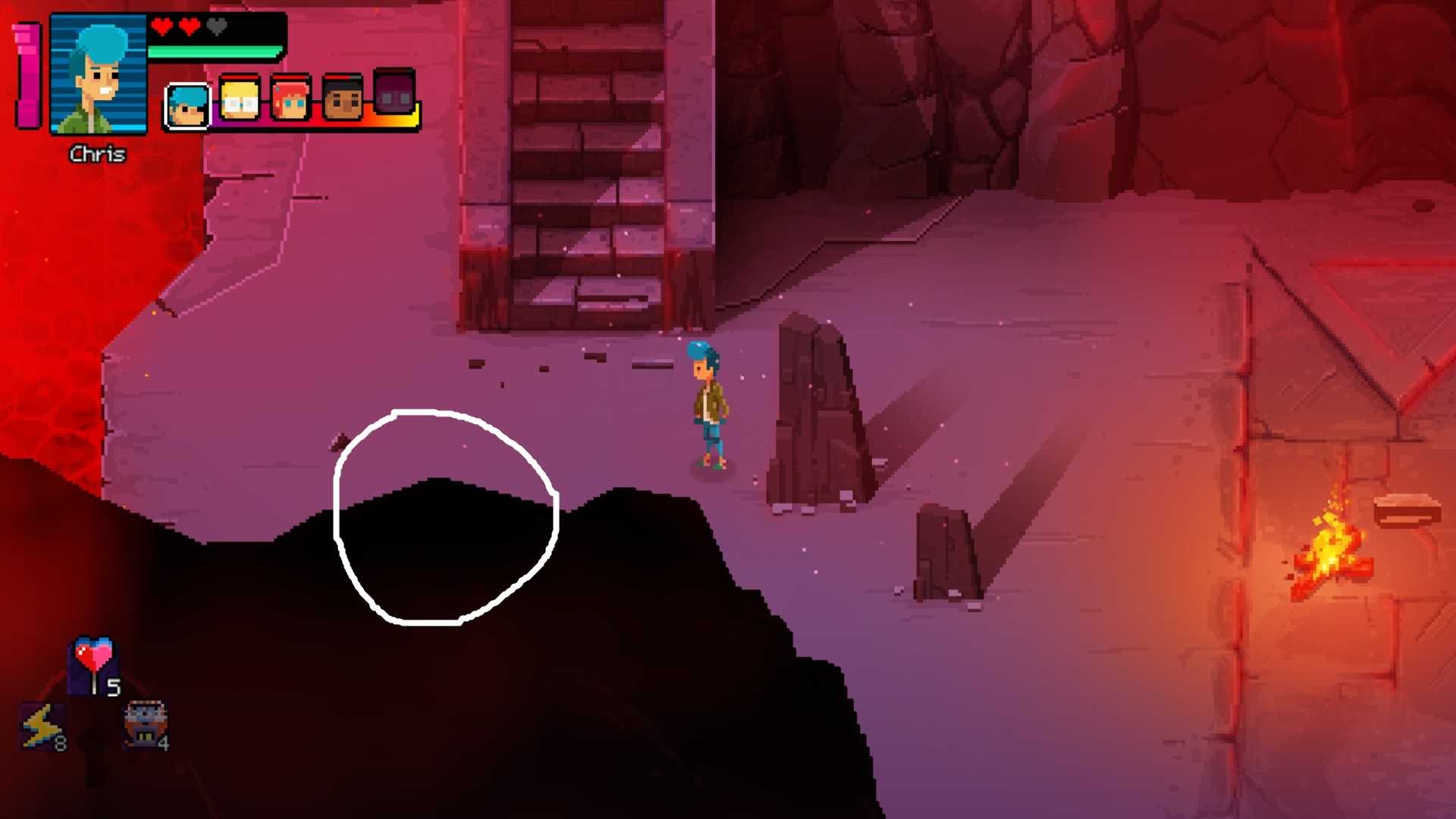 Поднимитесь по сломанному мосту вместе с Крисом и прыгайте в яму.