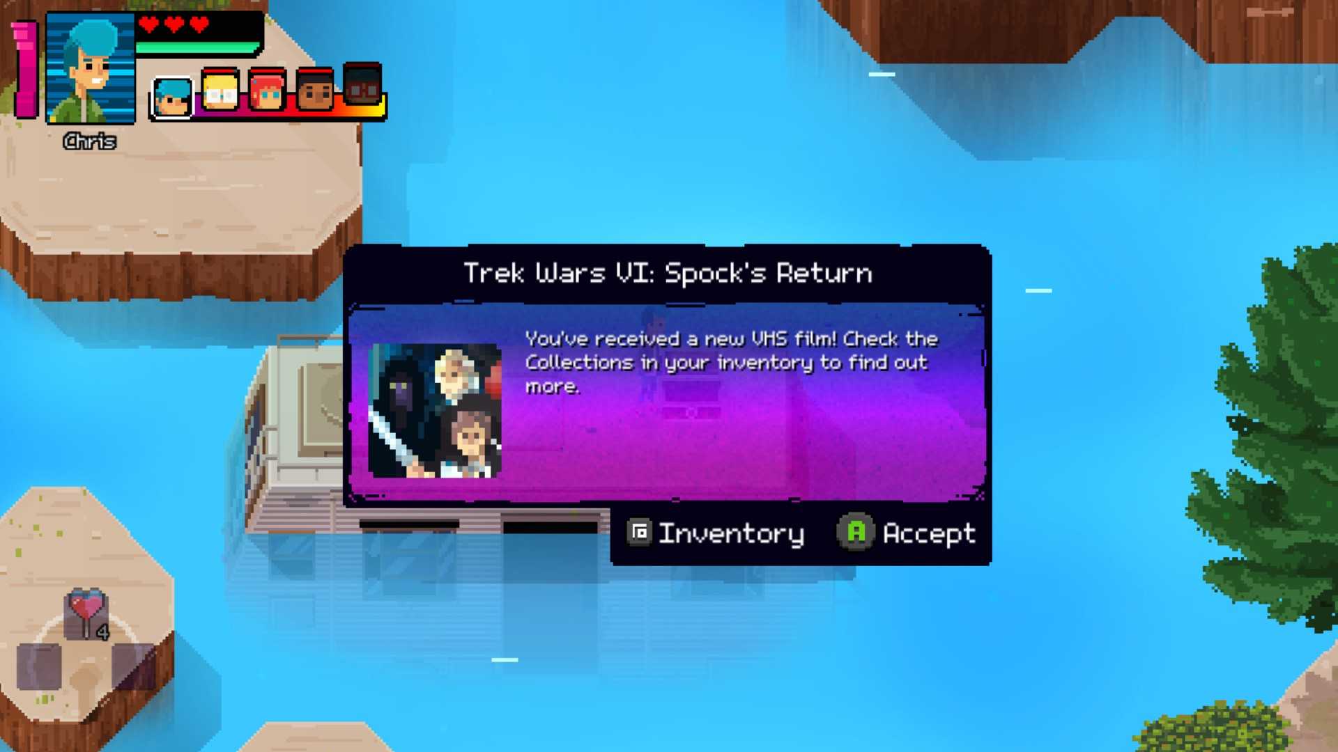 Эту VHS можно найти в главе 3. Просто идите по уровню, пока не достигнете этого места. Переправьтесь на маленький остров слева Мэттом и подождите, пока его выносливость восстановится.