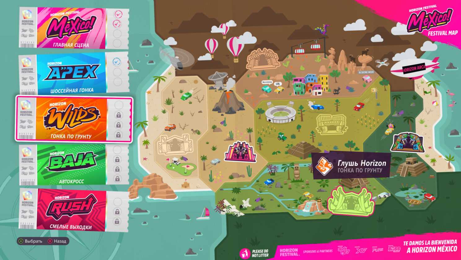 Для продвижения вам необязательно проходить все заезды или в нужном порядке — вы вольны колесить по Мексике так, как вам вздумается. Даже если вы просто гоняете по дорогам и не участвуете ни в чём, то всё равно получаете награды. Держите максимальную скорость? Валите боком в поворотах? Сбиваете всё на своём пути или, наоборот, едете чисто? Всё это уходит в опыт, который даёт уровень и награду. Уровень открывает вам новые ивенты, а награды наполняют ваш кошелёк и автопарк.