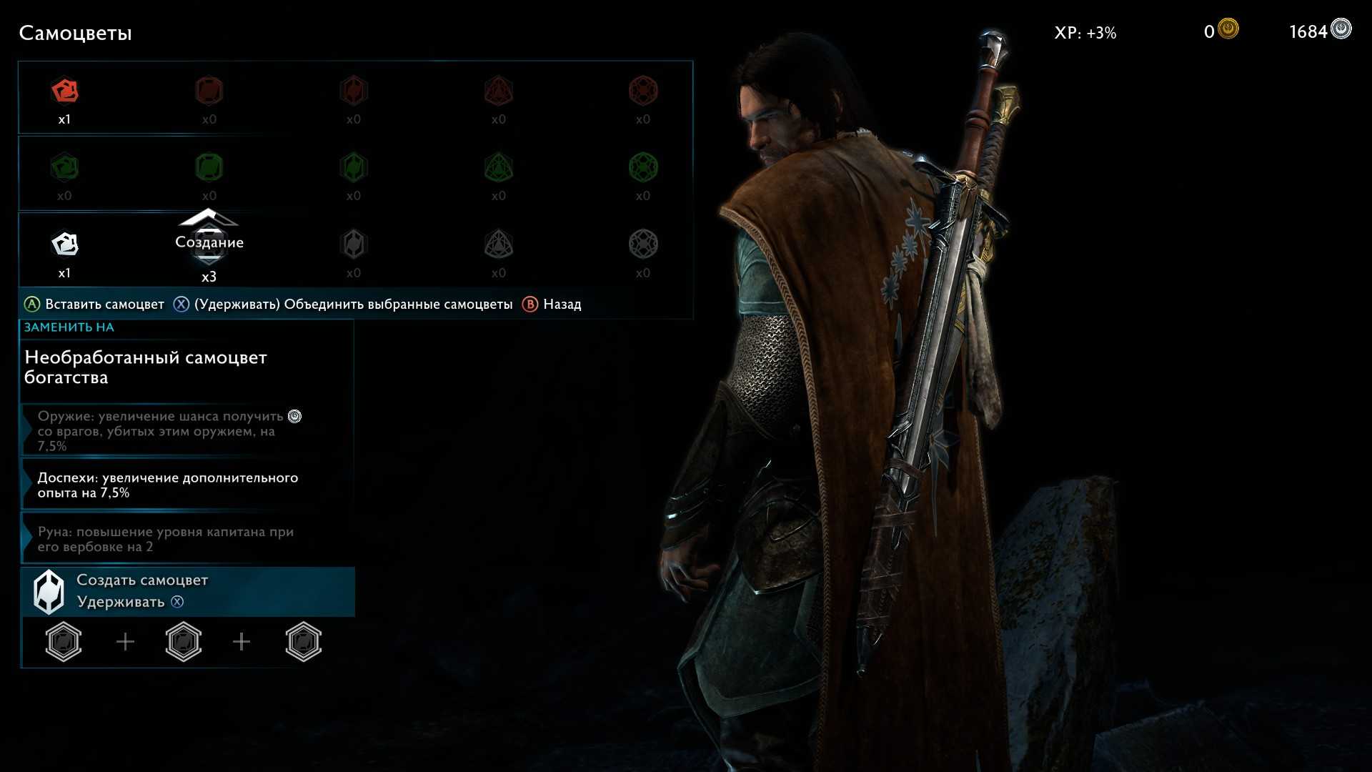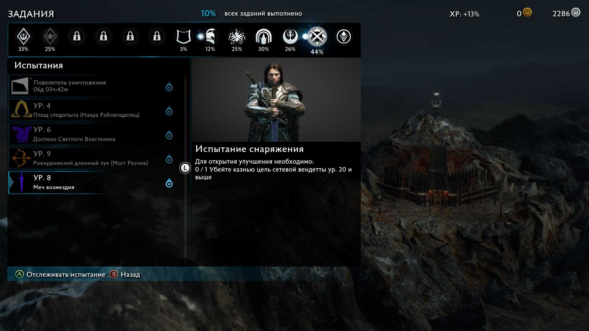 Баранор ЗавоевательПройти «Пустоши Мордора» с золотым рейтингом.После того как прошли в самый первый раз, начинаем новую игру. Выбираем сложность “Заклятый враг” (третий сверху). В принципе тут ничего сложного нет. Главное это скорость и после каждого форта юзаем ТП. В среднем у вас должно уйти около 1 часа. После старта летим захватывать форпосты. На форпостах обязательно убиваем всех командиров. Сначала прокачиваем скидку на наёмников, затем прокачиваем телохранителей. На форпосты ставим дешёвых, на телохранителей легендарных. После прокачки телохранителей качаем брата и аптечки. Остальное по-барабану. Вызываем телохранителей на каждом форпосте и дальнейших заданиях, они ускорят захват и убийства капитанов. Когда захватите форпосты, начинаем делать задания с короной у ворон. Я оставил 2 короны и приступил к штурму крепости. На коронах тоже убиваем всех капитанов. Быстренька быстренька захватываем точки на штурме и идём валить ласта. На ласте не забываем вызывать телохранителей. Я с первого раза получил 300к.
