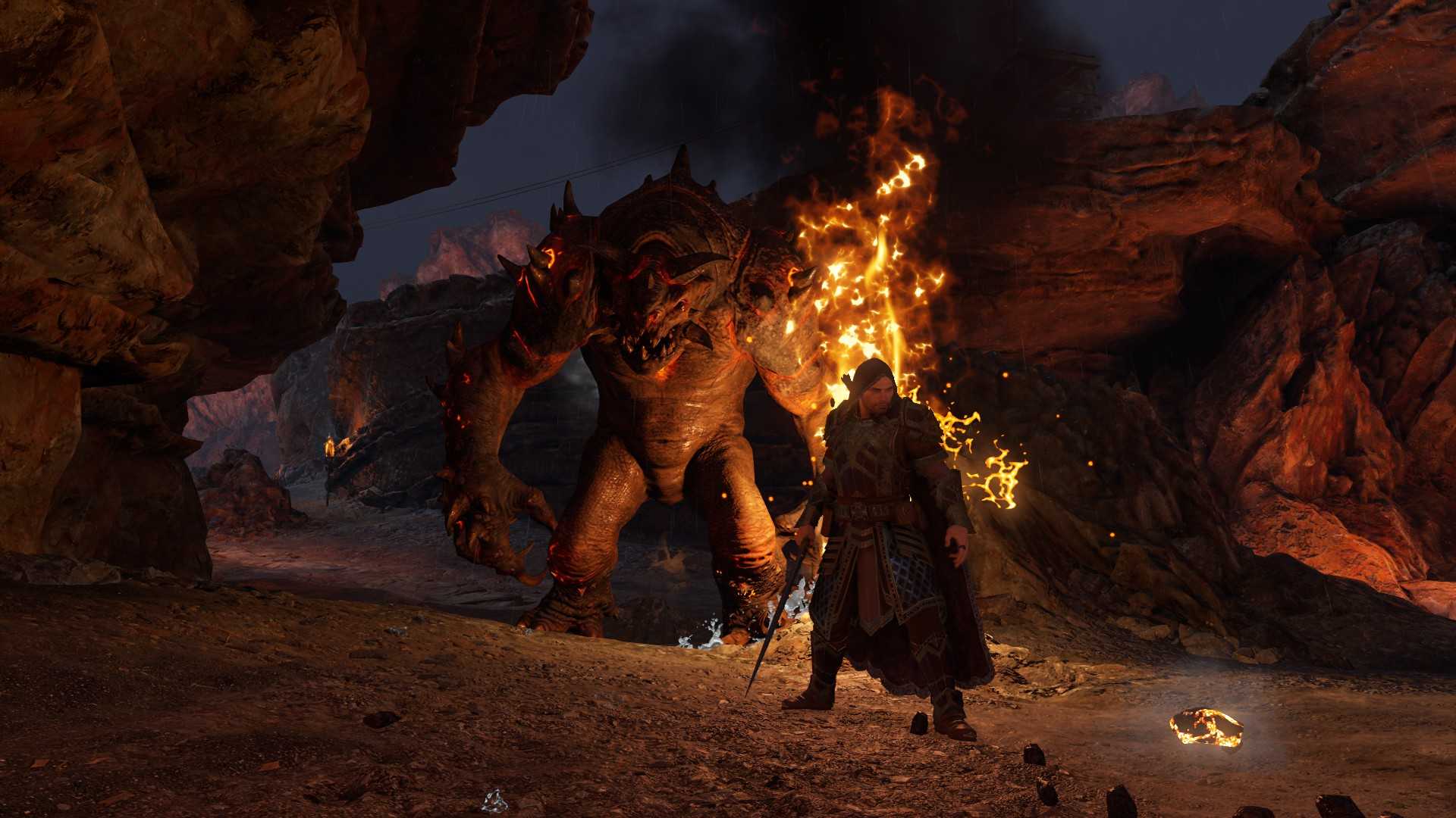 I do regret that Talion never doffs his tattered, homey ranger’s cloak. Switching out to flashier digs is one of the things I love most about the Assassin’s Creed series, where, for instance, I can make Edward Kenway look more like a proper pirate. Not so here; not without preorder bonuses or DLC. But Shadow of Mordor makes up for some of that loss with a rune system for Talion’s sword, bow, and dagger that replaces traditional loot. As they drop from the captains and warchiefs, they yield a compelling reason to hunt them down if you’re not so big on revenge. One rune might ignite enemies when you counter with your sword; another might make you immune to poisons. You can even break them down for attribute points, which will allow you to unlock more rune slots for a particular weapon and pump up Talion’s health.