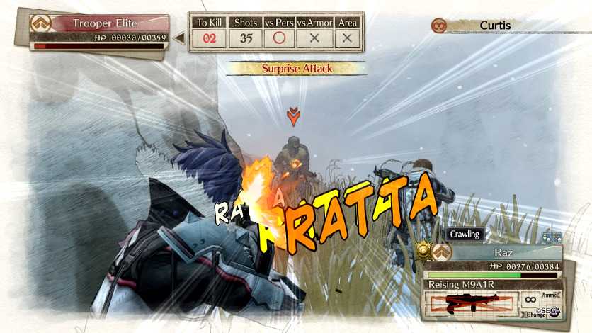 Главная особенность Valkyria Chronicles в том, что это не чистокровный представитель жанра, как, например, XCOM или Battletech, а уникальный гибрид пошаговой тактики и экшена от третьего лица. С одной стороны, битвы, как положено, разделены на фазы. Число действий ограничено, наносимый урон вычисляется из незримых характеристик, а юниты терпеливо ждут своей очереди в бою, даже если бабахнуть по одному из них из базуки или танка. Логично. И в то же время управлять бойцами надо по правилам экшена — двигаться можно куда угодно (если позволяет линейка AP), как угодно. А меткость персонажей и техники зависит не только от условных показателей, но в том числе и от геймера. Хотите, чтобы снайпер сделал хедшот стоящему на другом конце поля разведчику, а снаряд попал сразу по двум пехотинцам? Что ж, цельтесь получше, мышь придумали не просто так!