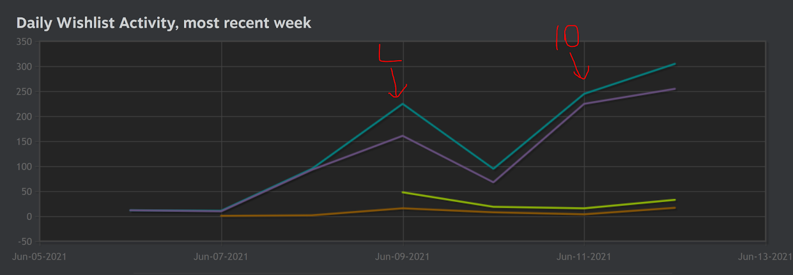 На графике: L — продажи игры на релизе, а 10 — новый скачок продаж, после достижения отметки в 10 обзоров