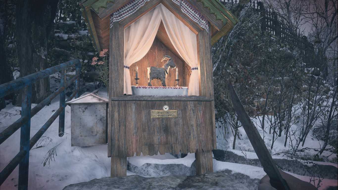 Первый козий оберег пропустить сложно, находится на алтаре в деревне.
