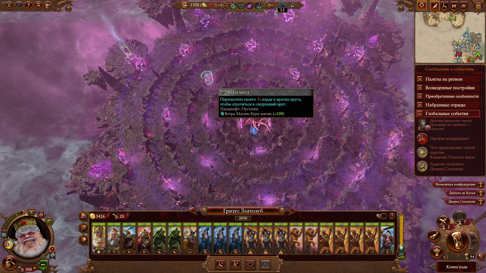 А мир Слаанеш – отдельная, очень многогранная игровая механика. Чтобы добраться до цели, нужно пройти 7 кругов греха. Каждый из них пытается соблазнить игрока артефактами, способностями, баффами к армии и дипломатии и просто огромной суммой денег. Если игрок принимает дар Хаоса, он покидает царство Слаанеш и не может вернуться до следующего открытия порталов. В кризисных ситуациях или если игрок опережает остальных по количеству душ, в мир порока можно приходить специально за бонусами. Так можно спасти, казалось бы, проигранные партии.