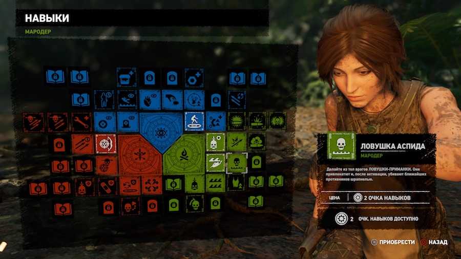 В Shadow of the Tomb Raider дерево прокачки представляет собой три ветки навыков: «Охотник», «Мародер» и «Воин». И, как в большинстве Uncharted-like играх, некоторые из навыков будут разблокированы лишь по достижению особого этапа прохождения сюжетной компании. Остальные же умения игроку придется открывать самостоятельно, на заработанные определенными действиями скилл-поинты. И, как показывает практика, умения ветки «Воина» оказываются не самыми эффективными, так как зачастую игроки предпочитают скрытные убийства открытым сражениям с целыми лагерями врагов.