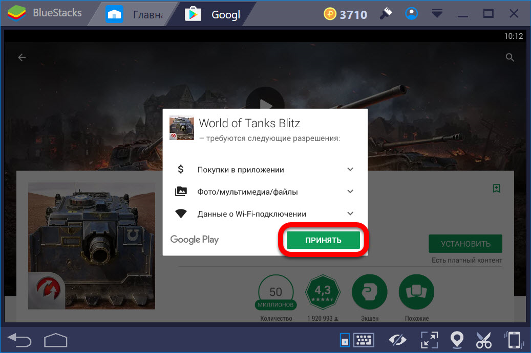 - Появится небольшое окно со списком разрешений, которые требуются программе. Выберите опцию «Принять», чтобы начать загрузку данной игры.