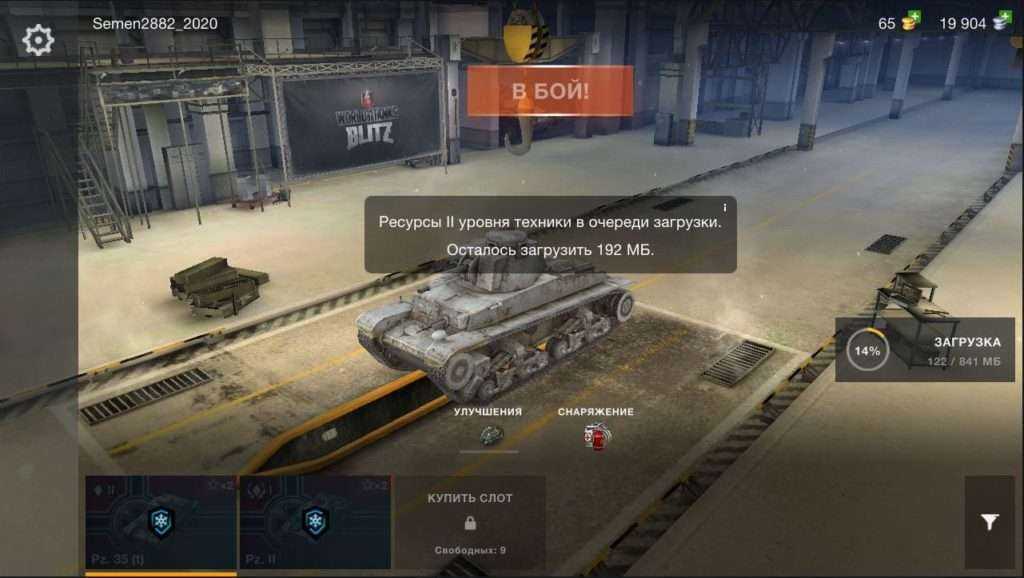 При первом включении мобильной версии World of Tanks Blitz понадобится скачивание дополнительных файлов. Подождав завершения предварительной настройки, вы сможете приступить к игре, выбрав себе псевдоним, подходящий по скорости сервер, а также танк.