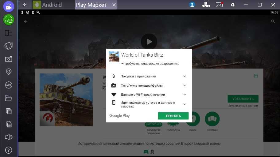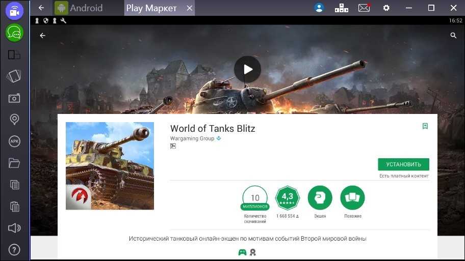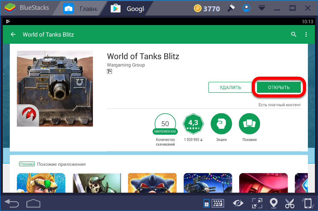Прибегнув к эмулятору BlueStacks, который позволяет создать виртуальную среду ОС Android, вы сможете с легкостью установить практически любую программу для смартфона или планшета, на настольный компьютер или ноутбук. Скачивание контента осуществляется благодаря официальному онлайн-магазину для портативных устройств, работающих на данной платформе. Чтобы абсолютно бесплатно скачать на компьютер World of Tanks Blitz через Google Play, выполните последовательность простых действий, которая описана ниже.