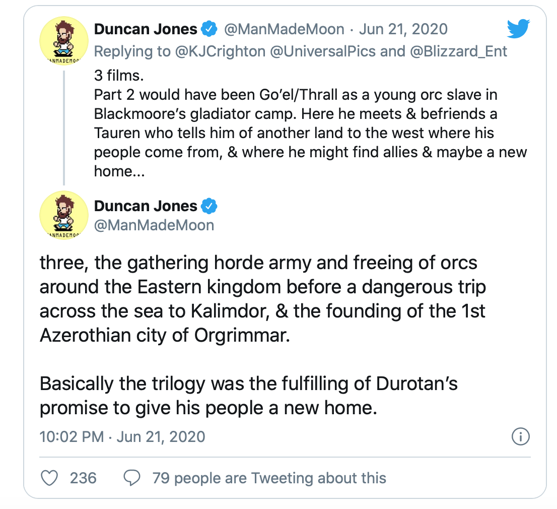 Пост из твиттера Дункана Джонса, режиссёра первой части Варкрафта