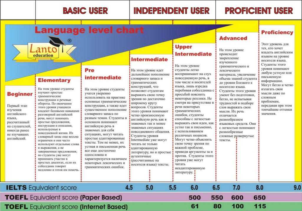 Перед подбором курса определите ваш уровень знания языка по таблице ниже (нажмите на таблицу для увеличения)