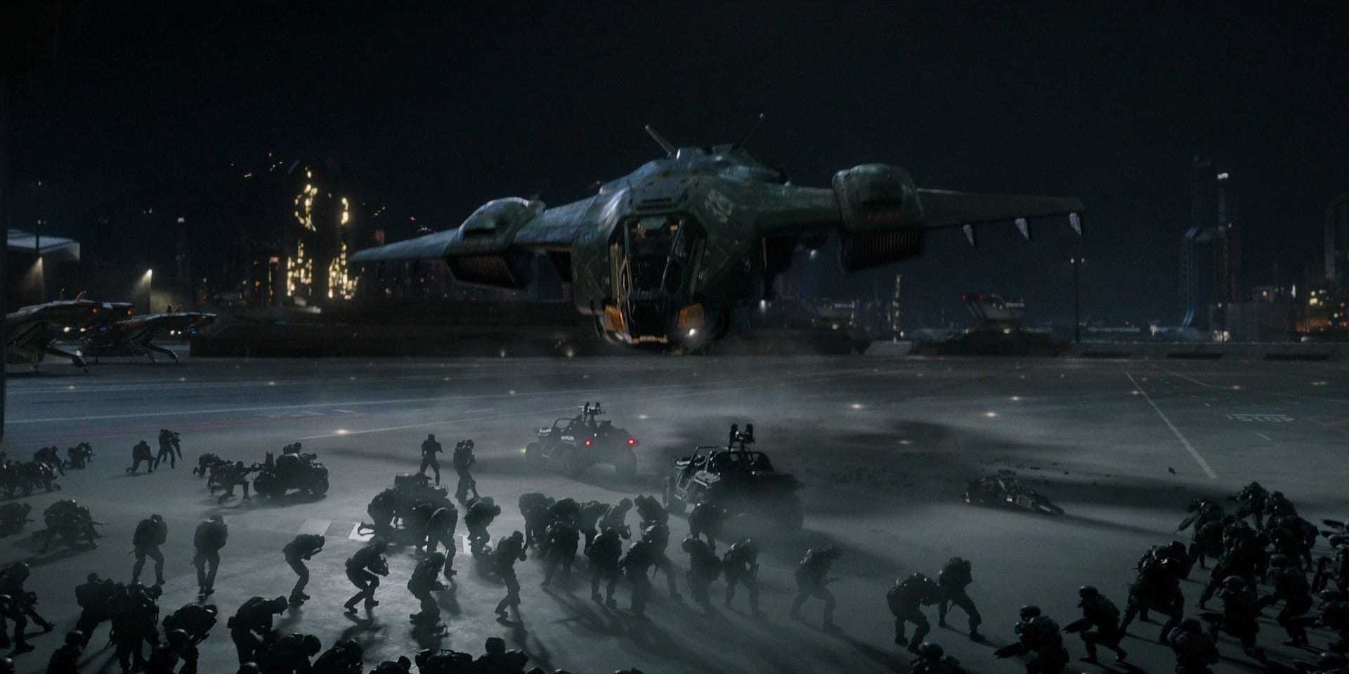 В углу изображения можно разглядеть надпись «Пилот Космического Жокея» (Pilot Space Jockey). Можно предположить, что Вейланд-Ютани возилась с биомеханической технологией Инженеров, как назвал их Прометей, и смогла создать своего рода экзоскелет, который могут носить солдаты.