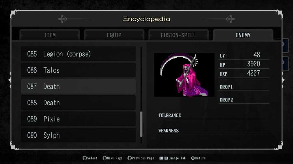 Второе, весьма значимое на мой взгляд, это энциклопедия – местная база знаний. Эмулятор отслеживает индексы побежденных врагов и подобранных предметов, о чем оповещает соответствующим сообщением. В любой момент по нажатию кнопки вы можете зайти в базу данных и получить о противнике или найденном артефакты немного полезной информации. Например, количество здоровья, список выпадающих с врагов предметом ит.д. Это не только удобное подспорье при изучении локаций, но и интересное решение само по себе. Я и в других играх люблю копаться в базах знаний, получая инфу о том или ином противнике, и мне по нраву то, что теперь это можно сделать и здесь, не выпуская геймпад из рук.