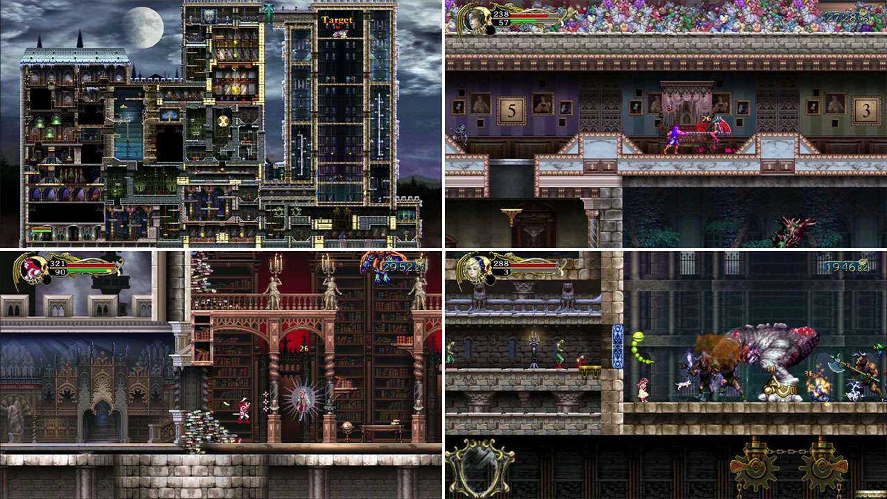 Первые три игры являются наследниками знаковой для серии “Symphony of the Night“. Это привычные сайд-скроллеры, представители популярного в последнее время поджанра метроидвания. Вам дается полуоткрытый мир, где вы вольны идти в любую сторону, но большинство проходов будут недоступны либо потому что вредный босс коридор прикрывает, либо из-за нехватки каких-либо предметов или способностей.