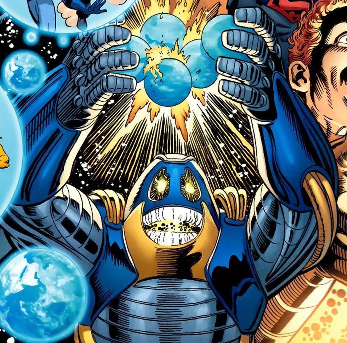 Анти-Монитор — это таинственное существо, которое сформировалось из оставшейся космической энергии вселенной. В печально известном мини-сериале «Кризис на бесконечных землях» Антимонитору почти удалось уничтожить мультивселенную. Чтобы победить его, потребовались объединенные усилия ВСЕХ героев и злодеев из мультивселенной. из КАЖДОГО периода времени. Что означало изменение временной шкалы и потерю всех предыдущих версий мультивселенной.