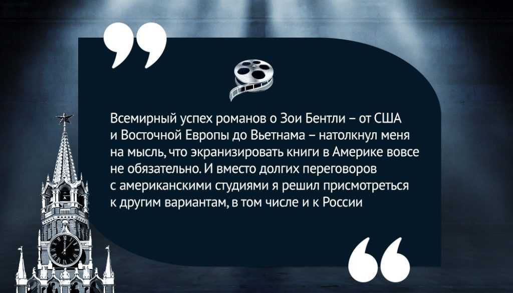 Вот, что сказал Майк Омер о предстоящей ленте: «Я счастлив, что мои книги смогут превратиться в сериал, и счастлив вдвойне, что заниматься этим будет КиноПоиск, один из ведущих игроков на российском рынке. Всемирный успех романов о Зои Бентли – от США и Восточной Европы до Вьетнама – натолкнул меня на мысль, что экранизировать книги в Америке вовсе не обязательно. И вместо долгих переговоров с американскими студиями я решил присмотреться к другим вариантам, в том числе и к России. Меня очень впечатлили российские сериалы “Эпидемия” и “Лучше, чем люди”. Еще один решающий фактор: сериалы здесь снимают быстро и хорошо».