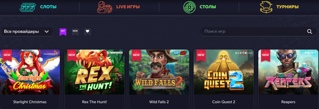 Большую часть ассортимента составляют слоты. Вы найдете не только самые последние новинки, но и классику прошлых лет. Тематическое и техническое разнообразие игр приятно удивит каждого, так что запросы даже самого привередливого игрока с большей долей вероятности будут удовлетворены