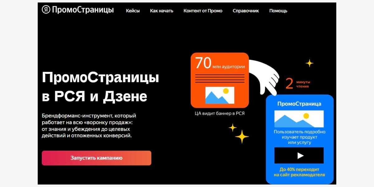 Рекламный кабинет Дзена теперь вынесен в отдельный сервис, который называется ПромоСтраницы, и по-прежнему связан с Яндексом. Уже некоторое время рекламные публикации нового формата отображаются не только в Дзене, но и на сайтах, входящих в Рекламную сеть Яндекса (РСЯ). Это прибавляет публикациям аудитории – 50 миллионов пользователей ежедневно посещают РСЯ.