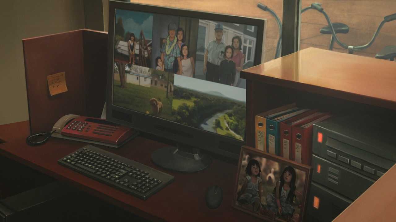 Аниматоры не меньше увлечены тем, чтобы сбить с толку: сначала дают наводку Алме, а после переключают скринсейвер на фотографию сада, пока она рассказывает о потерянной Софии. Но после удивления парня виднеется весь рабочий стол, мол, она всё связала и выдала предположение. Опять же всё не так просто, если вглядываться.