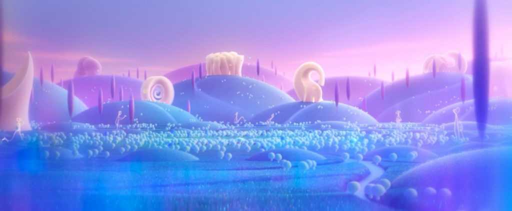 Второй акт полностью состоит из няшных антропоморфных голубых сгустков, которые мило существуют и мило общаются. Наверно, в этом не было бы проблемы, если бы первый акт – вся завязка, происходившая на Земле — не был бы так хорош и свеж. Картинка, пропитанная ритмом окраин Нью-Йорка и насыщенная джазом, даёт зрителю по-настоящему проникнуться главным героем, которому хочется сопереживать. Но нет.