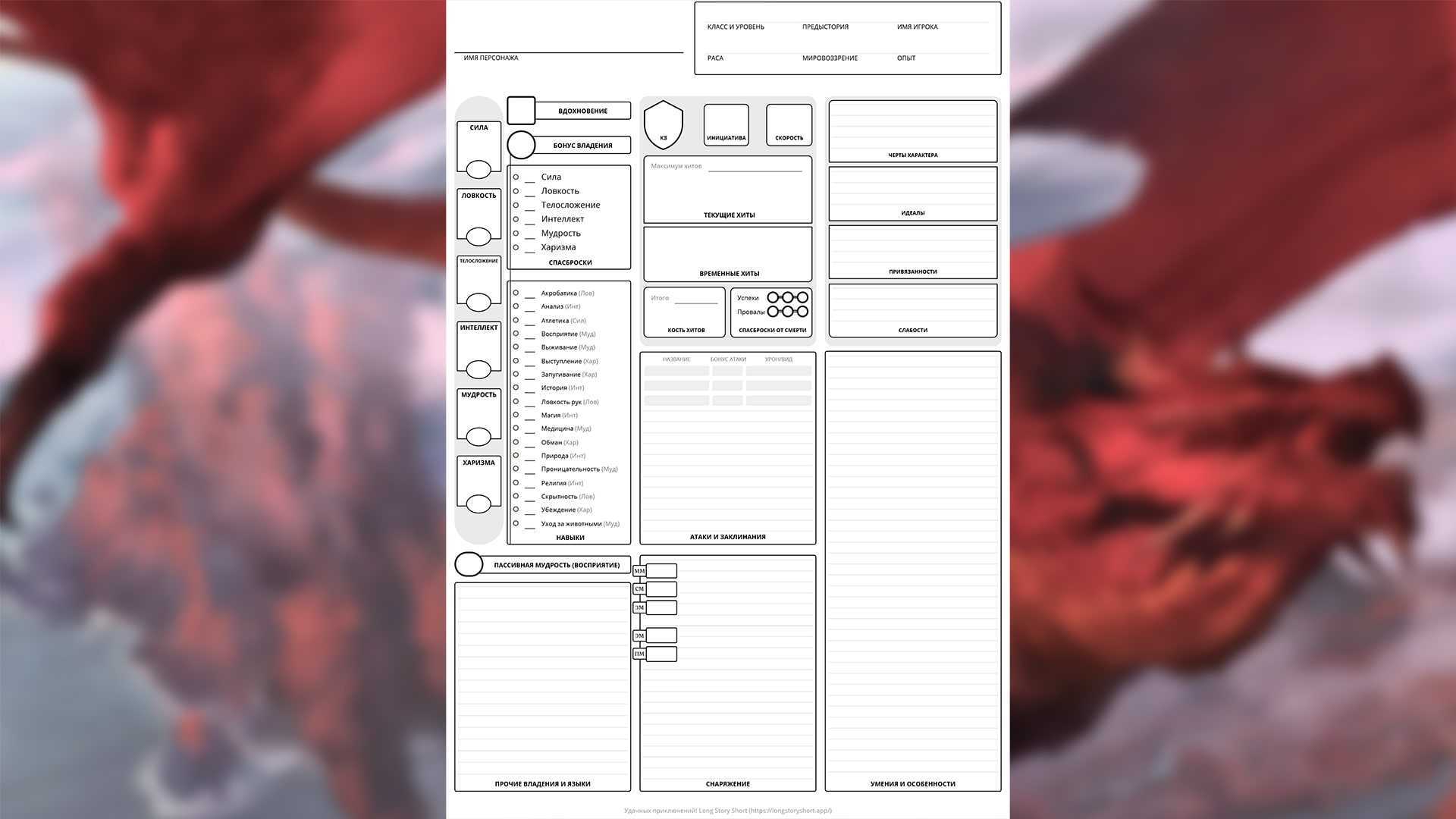 Существует набор готовых предысторий, который вы можете найти в Книге игрока. Обычно за основу берётся одна из них, в лист персонажа переписываются её особенности, а саму историю уже придумывает игрок.