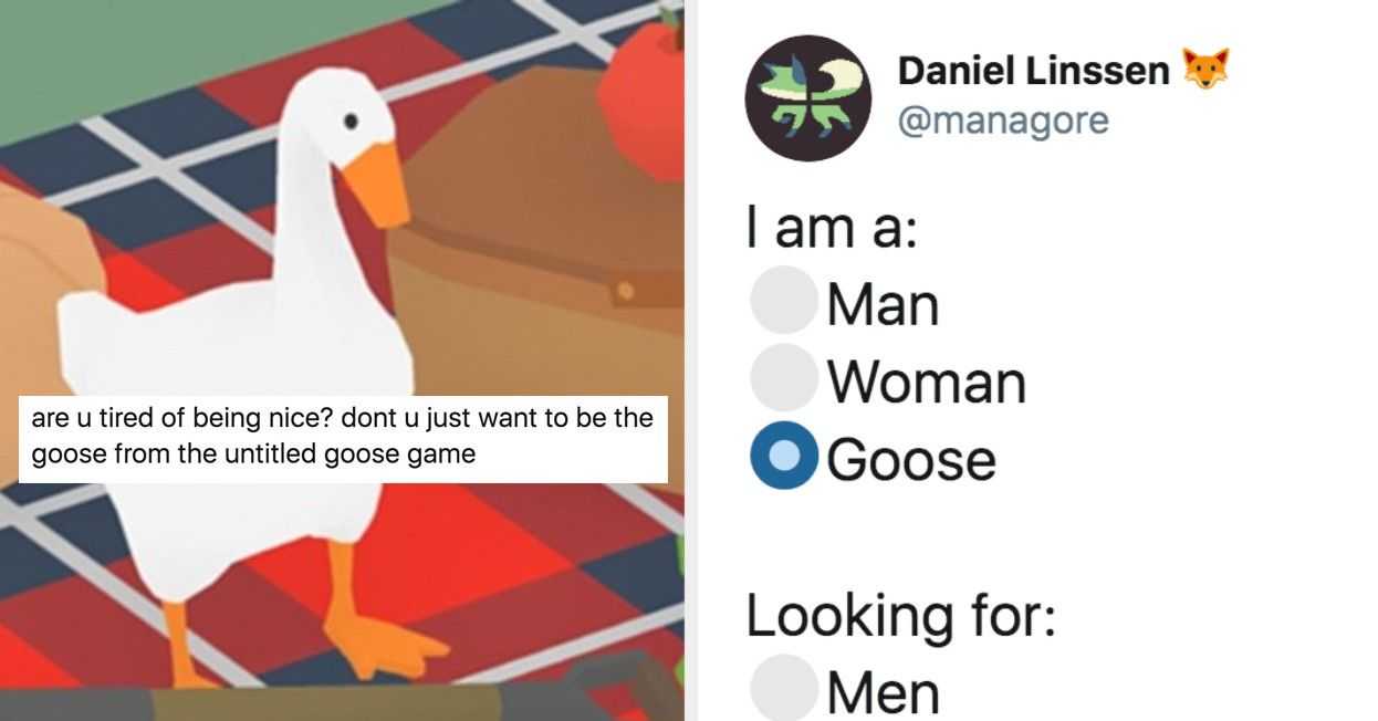Идея Untitled Goose Game родилась случайно: один из разработчиков отправил в рабочий чат фото гуся и предложил сделать про него игру. Коллеги принялись обсуждать удивительные черты животного: большая грудка, двухцветный окрас, безумные глаза и, конечно, уникальная походка. Твит с этой историей опубликовали еще в 2016 году — он вызвал столько внимания, что разработка действительно началась.