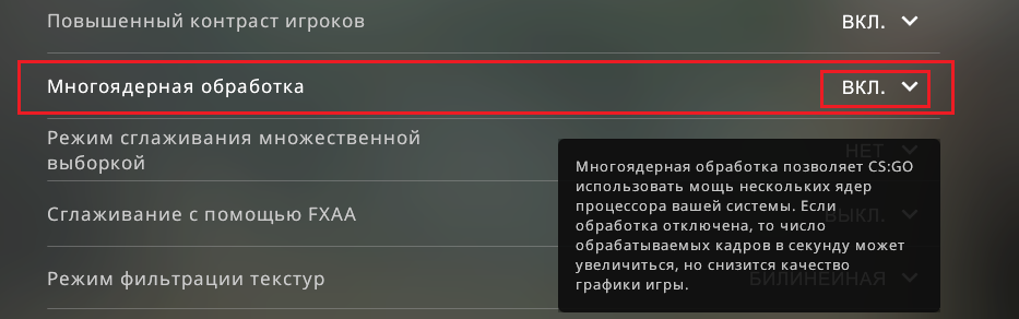 Внутри, в настройках графики, есть графа: «Многоядерная обработка». Этот параметр улучшает производительность игры при минимальной нагрузке прочих компонентов на систему. Чтобы избежать вылетов в дальнейшем, поставьте параметр на триггер: «Выкл».