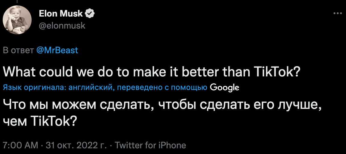 Маск поручил инженерам доработать код Vine до конца этого года. В каком виде планируется возрождение соцсети, неизвестно. Но Маск поинтересовался у подписчиков что можно сделать, чтобы сервис «был лучше, чем TikTok».