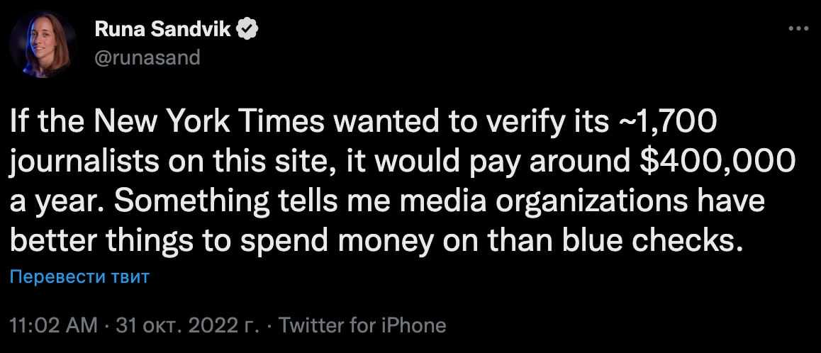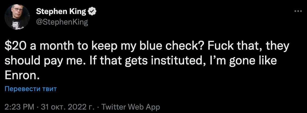 Маск потребовал, чтобы верификация профиля была доступна по подписке Twitter Blue. Сейчас она стоит $4,99. По данным The Verge, Маск изначально хотел поднять цену до $19,99. Но потом Маск сообщил, что подписка будет стоить $8 в месяц.