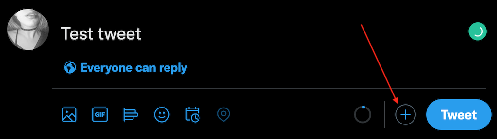 - Введите свой второй твит. Затем снова выберите значок +, чтобы добавить еще один твит.