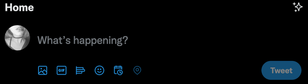 - Откройте домашнюю страницу, затем начните вводить свой первый твит в разделе «Что происходит» (или выберите значок « Написать », если вы используете мобильное приложение).