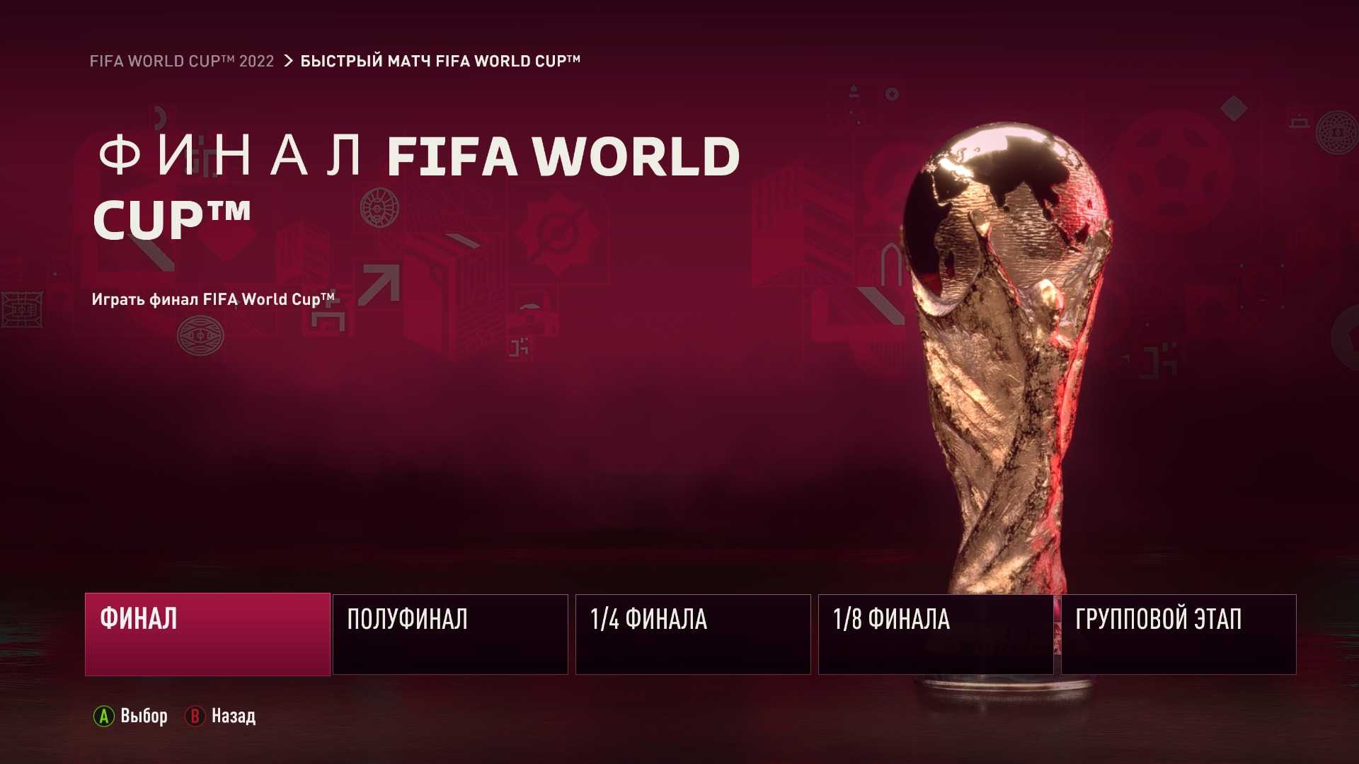 В дополнении ЧМ-2022 несколько режимов. Доступны отдельные матчи и турниры